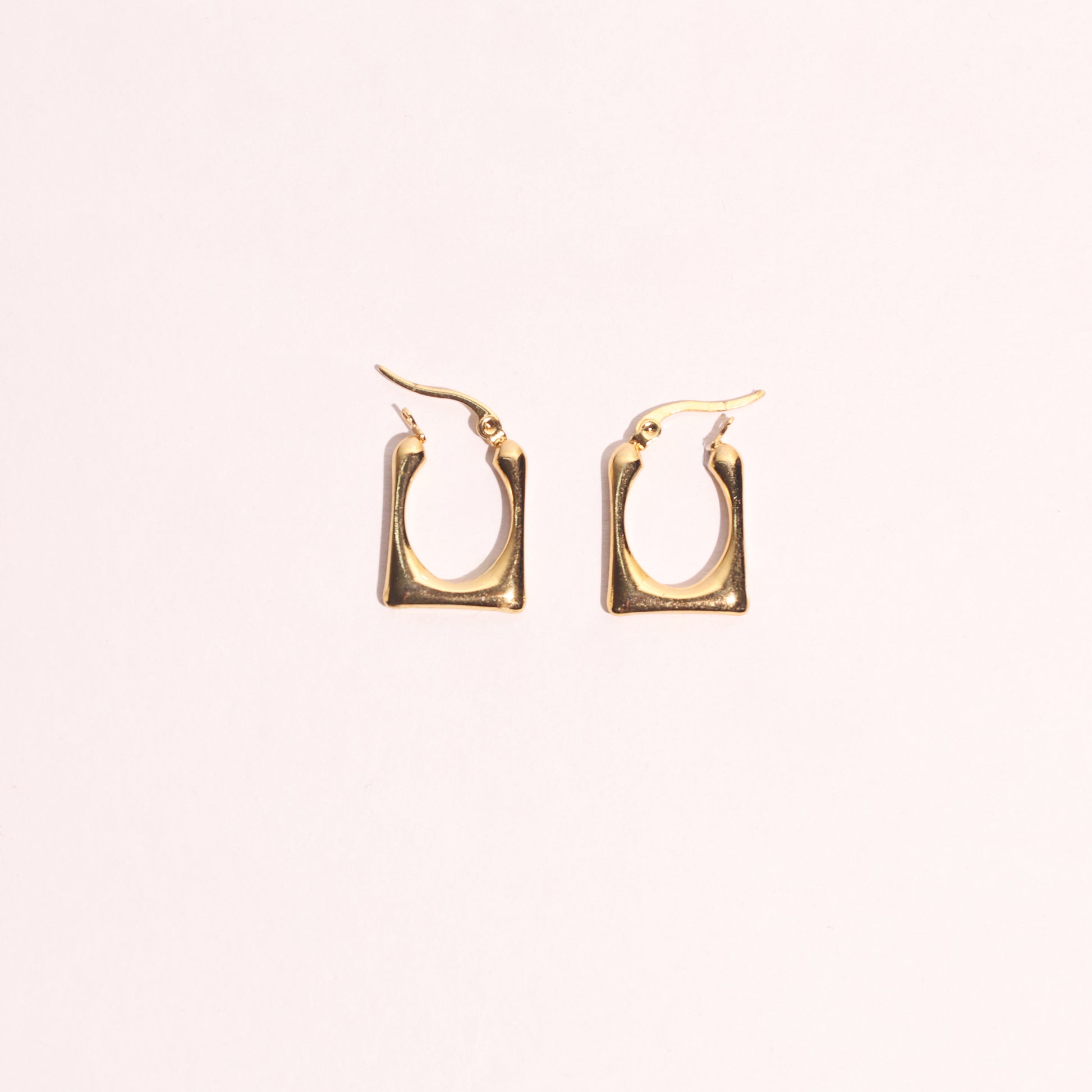 Keywords: gold statement earrings, modern geometric earrings, gold open-square earrings, sculptural earrings, lightweight gold earrings, unique designer earrings, minimal gold earrings, bold fashion jewelry, contemporary gold hoops, elegant statement earrings.