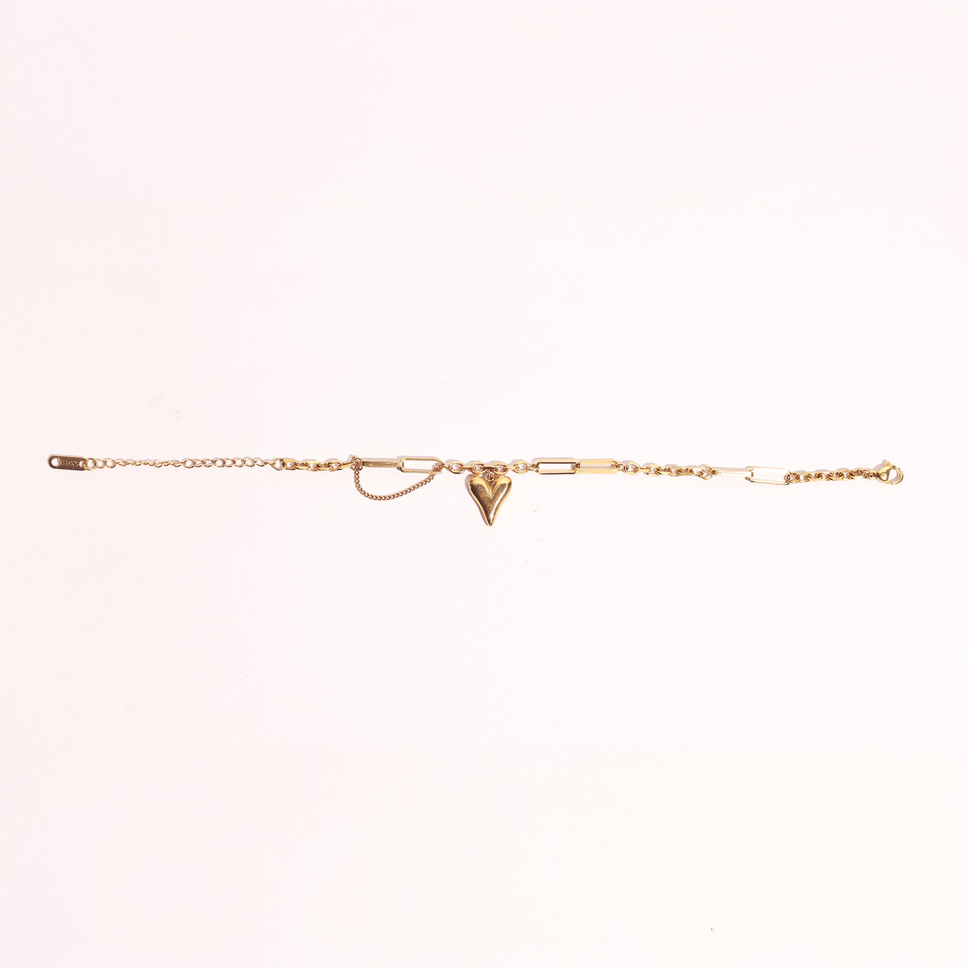 The Golden Heart Drape Bracelet is a graceful blend of romance and modern style. Crafted in a radiant gold-tone finish, this bracelet features a delicate mix of chain styles that drape elegantly around the wrist, highlighted by a sleek 3D heart charm that sways with every movement. The heart symbolizes love, passion, and connection, making this piece not just an accessory, but a meaningful token you can wear close every day.