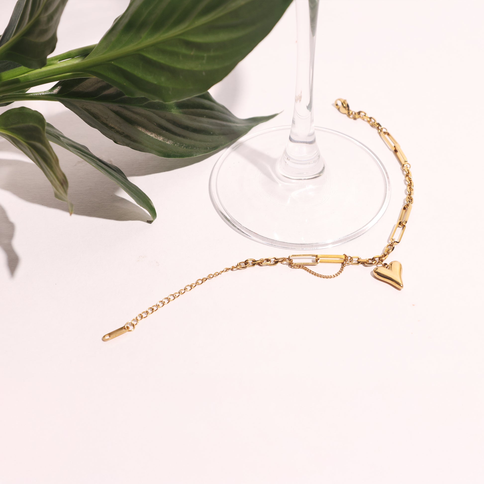 Its versatile design makes it perfect for stacking with other bracelets for a trendy layered look or wearing solo for an understated yet captivating statement. Lightweight and comfortable, the Golden Heart Drape Bracelet transitions seamlessly from casual day outfits to elevated evening ensembles.