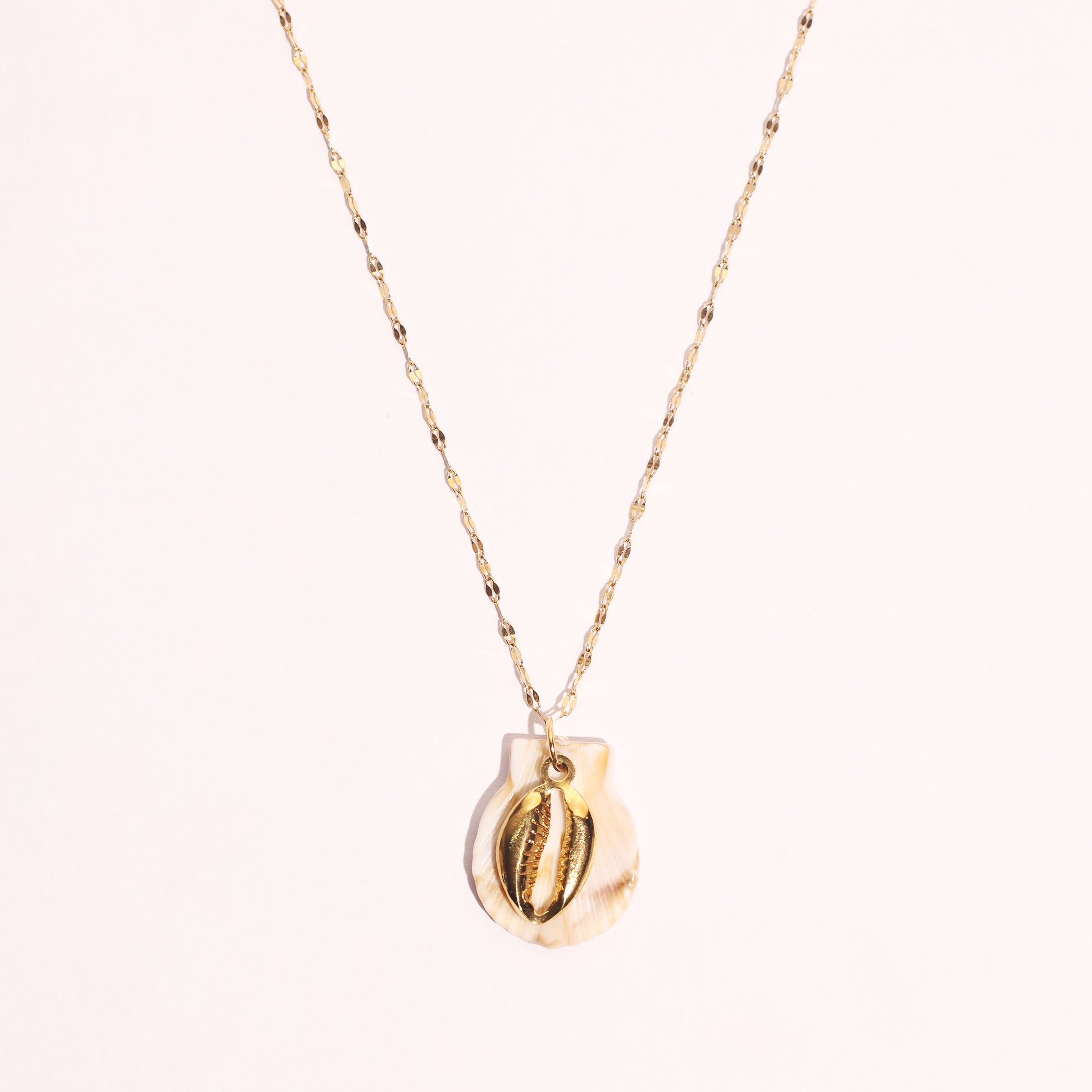 seashell pendant necklace, gold cowrie necklace, layered shell jewelry, beach-inspired accessories, summer gold necklace, ocean-themed pendant, coastal style jewelry