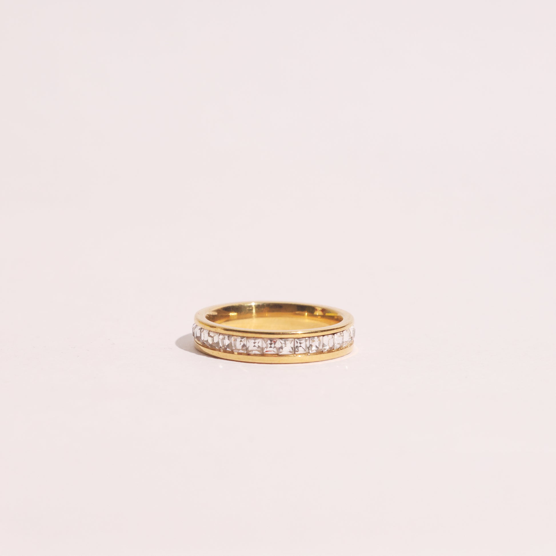 gold eternity band, cubic zirconia gold ring, sparkling eternity ring, gold stacking ring, classic gold jewelry, Stallae jewels, elegant gold band, gold ring for women, anniversary gold ring, timeless gold ring